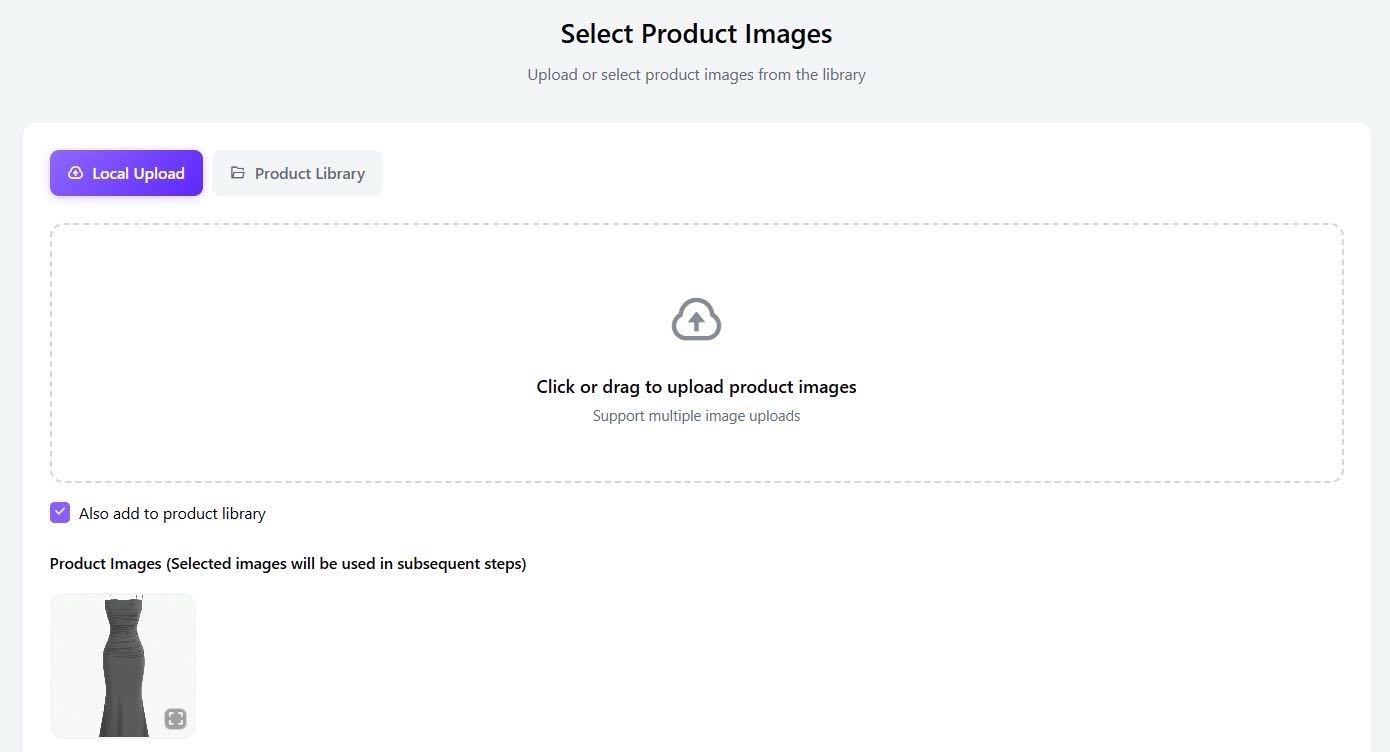 Everything starts with your product. Upload a high-resolution image of your item. This serves as the "anchor" for the entire generation process, ensuring your product remains the star of the show.